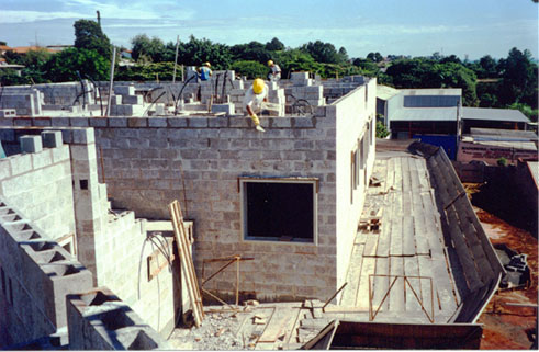 Início da alvenaria do segundo andar do bloco C - Janeiro de 2001