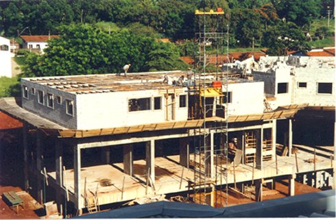 Preparação da forma para a laje do segundo andar do bloco A - Janeiro de 2001